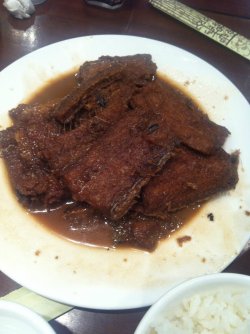 福满园是超高性价比的餐厅了,装修比较简朴,菜式做的也没有什么浓妆艳抹的,吃起来很香才是主要的。红烧排骨或者干炸带鱼都是必点的菜了,排骨的话很厚道,骨头很小肉块很肥美,酱汁的香味也不错。带鱼炸的很久,颜色都是深红色的了,不过可惜带鱼的鱼刺似乎细小了一点,吃起来要小心。查看更多