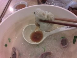 人气美食介绍过,店面非常小,人气很旺,但是店面还是保持得蛮干净的,小笼上的非常快,皮比较薄,但是内馅汁的味道比较淡,内馅也是比较寡淡,沾上醋之后,完全吃不到肉香味。小笼由于比较小,干得比较快。招牌老鸭粉丝汤倒是不错,查看更多