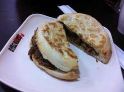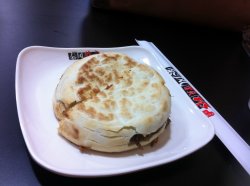 周六中午和爸爸去农工商买好东西之后,我和爸爸都觉得有点饿了,可是又不想吃的太饱了!考虑之后,决定去吃肉夹馍!秦风赣水的肉夹馍可是在宝山出了名的呢,虽然我一直觉得比较的贵,可是吃起来真的不一样!要了两个肉夹馍没有切开,一人一个,外面的馍脆脆的呢!里面的肉那叫一个香嫩啊!全是肉,才有满足感呢!查看更多