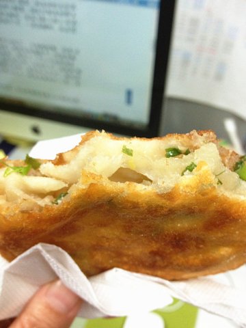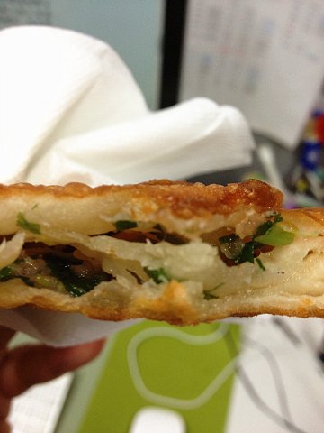 出门办事的时候看到这家店,店铺小小的,门口有人排队,于是我就个闹忙的排了一下。这家的葱油饼是锅子里煎的,金黄透亮。它家的葱油饼和通常的不太一样,里面还有陷子,有肉有葱,里面的葱特别的香,因为还有肉,提了鲜味,趁热最好吃。现在葱油饼越来越少了,希望这家可以一直开下去。…查看更多