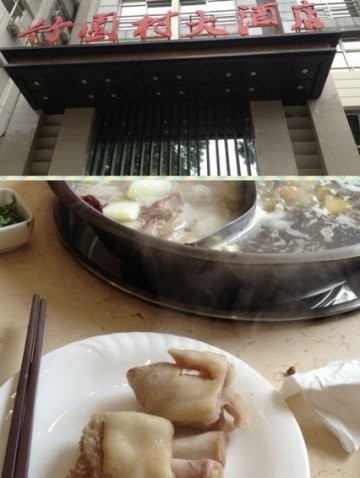 这家竹园村可是我们经常去的一家吃火锅的地方,他家有家乡鹅火锅,大红公鸡火锅,当然最爱吃的还是他家的猪蹄火锅,他家这个叫蹄花滋补火锅,118元一份,我们要的鸳鸯锅,服务员端上来的时候猪蹄已经在里面了,不过需要再煮一小会儿,于是我们先喝了一碗高汤,很鲜美啊,各种营养吧,辣锅那边有一些中草药的味道,我不喜欢吃辣的所以一直吃的不辣的这边,一会儿后夹了一个猪蹄已经比较烂了看来是事先炖好了的避免耽误时间,猪蹄的皮比较有嚼头,而且感觉随着时间越来越长猪蹄越来越有味啊,一份的量三个人吃绝对没问题,性价比还是蛮高的,而且他家还有免费的醪糟、小菜和饮料,性价比很高啊!…查看更多