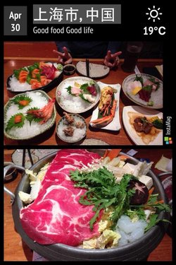 298的那档没有雪蟹可以点,398就可以了,海胆也能点。说是订座过去便宜40变成258的优惠价,但是其实自己过去也是这个价格。6点40到,已经只有吧台位子了。我们坐的那个区域里有4人位的5张台子,只有一个服务员。很佩服她,上菜慢归慢,居然没有漏单!这种放题的最怕漏单,这点做得很好啊!小小的区域5张台子全坐满了,所以很吵很吵很吵很吵很吵。。。(绝对不是凑字数,真的是完全听不到坐在对面的老公在说什么。。。)刺身,只要新鲜就很美味,红金枪和白金枪都不错,三文鱼切的很厚,就是甜虾要说一下,为啥不去壳呢?是因为还带籽的所以不去吗?吃起来不是很方便。银鳕鱼也很厚,焦焦的,烤得不错。海胆每人一份结束,每桌还送了半个芝士焗的龙虾,说是代替小青龙刺身的。我们还要了一个寿喜锅,蔬菜倒还好,就是牛肉少了点,生鸡蛋是要自己要求的,不然不给。还有,记得要早点要,不然没分完了。。。饭后的甜品挺丰富的,我们点了绝品布丁,其实就是布丁加香草冰激凌。那里的冰激凌是红豆抹茶和香草,味道都还蛮浓郁的。值得一提的是,黄油螺不好吃,大家表点了,还是生的螺比较脆。总体满意,这个价位的话,吃吃还可以的查看更多