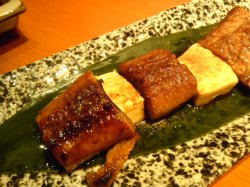说说菜品:鸡蛋卷 这个同桌的JMS都不太喜欢 我却很喜欢的 平时也喜欢玉子寿司之类的刺身拼盘 喜欢北极贝 章鱼也不错,还有三文鱼也很新鲜,金枪鱼肉质蛮肥厚的,用料都很赞。清酒 据说这种是店里最烈的,瓶子蛮好看烤银鳕鱼 老板承诺百分之一千的正宗 确实蛮新鲜 口感也很赞海胆 味道还蛮习惯的 微微的薄荷味道 鲜嫩爽口烤鳗鱼 很嫩的 松茸海鲜汤 料很足的 汤稍稍有点重口味牡丹虾个头很大呐 纠结了很久还是没吃虾头寿喜锅 比想象的好很多~咖喱乌冬面 这个美味的,感觉比花丸的咖喱乌冬更好吃呐。布丁不错哦 里面的麦片喜欢查看更多