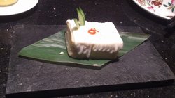 上次吃饭给了两张券,最后一天又去消费了,真是是全额抵现,不用再花银子,而且这次味道好像和点的菜品有关,味道似乎比上一次好吃一些不得不说他家超火,中午没有位置,连等位都不接了,因为节日的关系服务员都回家了,所以他们2到4.30需要休息一下,我们是有多忠诚,于是先吃了点肉串甜品之类硬是等到4.30再来吃,呵呵因为有了上次的品尝之后,认为好的果断再点,小布丁,黑叉烧,肉丝炒年糕,酸辣土豆丝又点的一遍,不同的是这次叉烧已经被半分割好,这样更方便食客自己再分割,一样的好吃,不喜肥肉的我居然不觉得这个腻,够香不过年糕有点失水平,这次有点干,或者这次点的多,不怎么饿,上次这可是主食啊小布丁一如既往的好吃,也好喜欢那个瓶子,可惜不让带走土豆丝这次似乎比上次有味道了一些,有进步,主要是实惠啊这次点的都超级顶饱的,豆塔塔,别看那么一小块,超级顶饱的,下边就是土豆泥,上面是沙拉,三个人最后勉强分食了,奶香有的,多吃腻人,适合多人时点上次我就想点金牌酥鱼,但是种种原因吧,这次如愿了,味道还不错,比上次别家杭帮菜好吃,鱼肉入味,就是还要小心鱼刺,旁边的蘸料可以忽略,一样的好吃乐章酥皮虾,这个个人觉得很赞,比那个摇摇虾好吃的多,同样都是过油的虾,这个干爽更保留了稥味,而且虾的量很足,还有好吃的土豆(后来我们发现这个土豆利用的真充分,中间部分都抄土豆丝了,两头做了这个菜的配菜,土豆条,最后部分就被做成豆塔塔的土豆泥了,我们也算吃的圆满)白灼广菜心,头一次吃酱汁是自己淋上去的,貌似味道自己弄的不均匀,可能我们吃的方式不太对吧,不过整体还可以,挺清淡的水晶虾饺,比较一般了,就一个小虾仁,和我喜欢的差一些这次没有点那些鸡尾酒,所以价格一下就便宜了,柠檬的不错