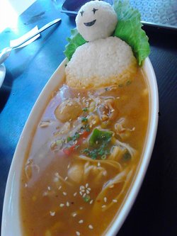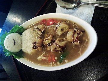 米国的第一家餐厅就是一元路的这家,因为这个造型可爱的泡泡肥牛饭吸引而来的。 中午去的人还比较多,等餐时间大概20分钟,还可以接受。店内空间不算大,就是特色小店的感觉。 泡泡肥牛饭,造型确实很可爱,让人不忍心动筷子。但是味道很一般,汤汁倒是挺多,但里面的料却很少,肥牛少就不说了,连配菜都少得可怜,就飘着几根金针菇而已。吃起来就是泡饭的感觉,不怎么样,完全就是造型取胜了。