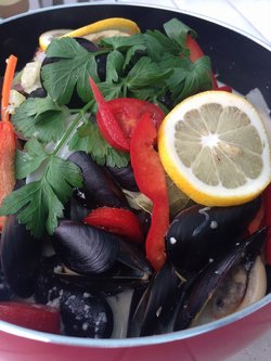 20141007上菜太慢敏敏木有吃到。。。悲剧啊爱抢购3块钱的青口贝去的,现在店里搞活动是88米,原价108米量是很大,贝壳也很多,但是东西一般不算最新鲜,虽然是比较特别的咸奶汤做的,但是总觉得不咸不淡味道好一般。。。就是说不上多少好吃环境倒是可圈可点,亮蓝+白色很有风情,二楼还是半露天,但其实仔细看看不是那么精致,服务感觉也有点漫不经心。别的菜没试过不好说,但是真心觉得做菜不是很用心。。。可惜了希腊菜那么好一个噱头,除了亮蓝没什么吸引人的地方