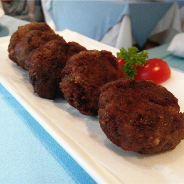 米罗斯希腊餐厅 Greek Taverna他家吃的是类似于西餐和休闲餐,各种烧烤和肉丸什么的,我们点了烤鸡翅,类似于奥尔良口味的,还有咖喱牛腩,颜色比较深,有一点点老,猪排不错,是油炸的,中规中矩
