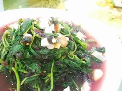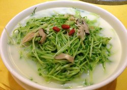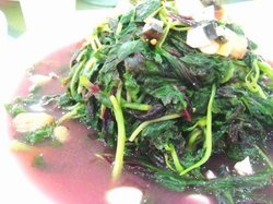 粤北小城的粤菜做的其实挺小众化的,不是一般广式餐厅里面那些烧腊之类的东西,吃着还是挺有新鲜感的。豉蚝花甲就不错,花甲的味道我觉得就是淡薄的蚝油味道,吃着不太涩,但是挺香的,肉还是挺肥的,完全没有沙子的,葱粒没有炒过,有点生。上汤蒜苗是比较贵的素菜了,蒜苗挺多的,很细嫩,上汤也是纯素汤来的,蒜苗的味道挺生涩的,有点蘑菇的香味吧。查看更多