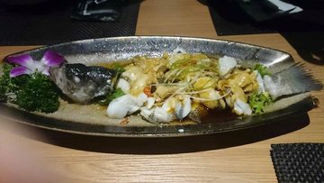 这家店光看店名就知道是家粤菜馆子,这家店开在恒丰路上,这里交通非常方便,店内环境也很不错。他家的特色菜油浸鲈鱼很不错,基本每桌都会点。鲈鱼个头不大,被片的薄薄的一片片,鱼肉上面淋上了些许调料后使得鱼肉更入味好吃。