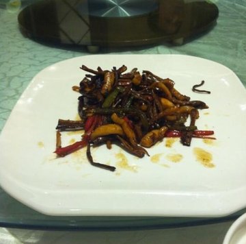 粤1525这家店是老板请客户吃饭的时候光顾的,这里环境非常优雅,特别适合商务宴请。黑胡椒牛肉粒选用了上好的雪花牛肉做的,牛肉切成方块,搭配上洋葱一起炒使得牛肉一点腥味都没有,牛肉嫩滑多汁,外面包裹了浓郁的黑胡椒汁,味道特别美味。他家的菜量不多,显得价格略贵。