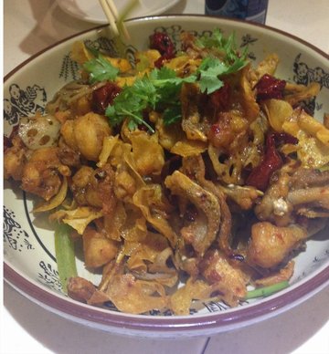最好吃的干锅牛蛙就是他家了。大华的这家分店人不是很多的。每次去都可以自己挑座位坐。干锅牛蛙,78元。每次基本都会加一份牛蛙的。25元加一份。里面的藕片跟薯片很脆的。牛蛙非常的入味呢。而且外脆里嫩。