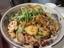 这几川菜饭店不错,生意也还好,上菜的速度也是可以的,那个香锅牛蛙,很好吃的,果然很香啊,分量也是给的很足的,那个牛蛙的肉又嫩又Q,我喜欢,有点辣辣的,口味很好,干锅里面的配菜也不错,而且还可以自己额外再叫配菜的,选择范围很多的,可以来这里尝试一下。查看更多