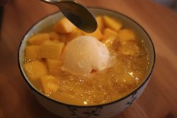探店时,小店还处于新店状态,这是第一家店,后来陆续开了好几家分店。当初如果不是团购,应该都不会知道静安寺附近有这么一家小小的却异常温馨的甜品店吧。 从越洋广场吃好午饭慢慢地逛出来,走过中福会少年宫,就找到了这家店,地点已经接近美丽园。 周末的下午,店里才只有三三两两的顾客。当时团购价记得才20不到,相当给力。给了团购密码后,告知我们4选2,要的是多芒亮晶晶和椰汁红豆糕。本来想选芒果班戟的,想想两份甜品都是芒果的,没什么意思。 可是当店员把椰汁红豆糕拿出来时,我才后悔了~~因为是从冰箱里直接拿出来的成品,不是现做的。小小的瓶子,味道还可以,不过不够浓郁。 而另一份甜品,多芒亮晶晶,店员上来就打招呼说,要现做,时间会久一点。果然一等就是20分钟。好在端上桌后就惊艳了一下,满满一碗芒果和芷若,中间镶嵌着冰淇淋球,光看色面就异常诱人。芒果的确够新鲜、量够足,太赞了,性价比啊,有木有~这样一碗,在满记怎么嘀也要30左右了,而且哪有那么大的量。 堂吃时,看到他家外卖单子挺多的,店员们一直在忙碌着,人手显得有些不够。…查看更多