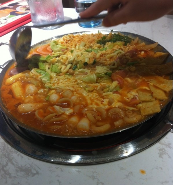 网上买的他们家的团购券芝士年糕火锅 2人份 76元 鱼饼火腿拼盘 1份 28元 饮料多选2 2份 20元 总价值团购价 124元86.8元 【芝士年糕火锅】很好吃哦。天气有些变凉,这款火锅吃得人热火朝天。里面东西很多。芝士味道浓郁,年糕外面很糯,看得好馋,甜甜的,汤汁辣辣的。配上芝士,可以拉丝。天冷吃上一份,好舒服。汤汁浓郁,酸中带甜,微辣的口感很开胃。【鱼饼火腿拼盘】加上拉面,鱼饼,很棒饮料喜欢的是香蕉牛奶。人均差不多45元这样。韩国火锅我最喜欢啦。服务员们都很有礼貌,一直会时不时地来看看客人有什么需要没。…查看更多