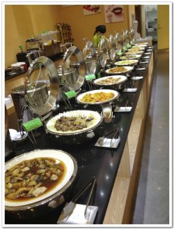 非常满意的自助餐!吃得肚子圆滚滚,撑到扶墙而出的状态啊,一点都不夸张!作为不爱海鲜不爱肉肉的甜食+素食主义者,素缤纷的出现正合我意啊!环境雅致,菜品丰富,服务热情,味道也是极好的,真是挑不出什么错来了,老少皆宜,值得用力推荐!一定会再来的!开头笼统地夸了一通,总要说点细节。一个人去的,没错,孤寡小妹我一人跑去吃自助了,一人坐一桌倒也舒服自在,服务员态度友好,也没嫌弃我一人。先说喝的,品种很多,有各色糖水:南瓜糊、芝麻糊、银耳汤、杏仁茶、红豆汤、番薯糖水......,多到数不过来了,我把银耳汤、红豆汤、番薯糖水混在一起喝了,味道蛮不错的,紫薯和番薯都有,蛮甜的,红豆汤里好多红豆啊,实诚!饮料记得有冰糖雪梨,清甜爽口,蛮好喝的,外带是5元一瓶,价格还是蛮公道。热菜蛮多的,豆制品和菌菇是主角,三杯鸡用的是杏鲍菇,真的吃出了鸡肉的味道呢,赞!西兰花咖喱土豆的那个菜也很好吃,咖喱味浓郁,吃了好多的西兰花。主食品种很多,特别的有玫瑰炒饭,玫红色的,原本以为是加了玫瑰腐乳,后来一尝也不是,不清楚怎么做的额,米饭满湿润的也不油腻,吃了几口。还有红豆派核桃派之类的,薄底料足,没吃光看看就心花怒放啊。中式点心做得很用心,不是普通的包子发糕炒面那些,有萝卜糕、大阪烧、意大利面、蚵仔煎、碗糕.....可以说是包罗了多个国家的小点心,好用心啊,表扬~样样都做得很精致,卖相就超诱人,可惜胃口不够大,装不下那么多。甜品大赞,提拉米苏做得很正,连吃两块,层次感十足,上面撒的巧克力粉苦苦的;巧克力慕斯也很浓郁,抹茶就逊色一些,冰柜里的红豆奶酪口感也很醇厚,红豆是大颗的蜜红豆,味道棒棒哒,甜蜜蜜呀。西点师的水平不错,比许多高级酒店的自助甜品做得都要好!冰淇淋很一般,自己挖就好,随便挖了点尝了下,没多大意思,不过配料蛮多的,还可以让服务员做炒冰淇淋,还是蛮有童年的趣味的。印象深刻的是舒芙蕾出炉的时候,餐厅里小广播响起,大家一窝蜂涌到柜台前,争先恐后地用夹子连着容器一起夹到自己的托盘里,我也拿了一个。造型蛮讨巧的,鹅黄色的鸡蛋糕,热乎乎地蒸出来,口感蛮松软的,但除了松软之外,也无特别,随便扒拉了几口,尝个味道就作罢,建议几人分食。沙拉的种类也很多,除了普通的生菜圣女果紫甘蓝之类,还有花生杏仁腰果等,而且蛮大颗的,不是碎末哦,吃了少许杏仁,好香好脆!从12点不到,吃到13点出头,1个多小时的饭吃得醉了~肚皮有限,最后恋恋不舍走了,还有好些食物没尝呢,像是现包的春卷,食材看着很丰富呢;还有担仔面、麻辣烫,希望下次约小伙伴再来吃一次!…查看更多