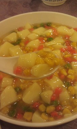 这个五彩豆腐是看菜单的时候看着颜色搭配的非常的漂亮啊,成品和照片确实没什么区别,很好看,豆腐是用的那种日本豆腐吧,吃着很细嫩很顺滑的,很大的一份,豆腐下面有鸡蛋羹,很好吃滴说。查看更多