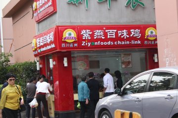 家门口一家开了挺长时间的店了。现在在上海很有名气,售卖的熟食很有特色我最喜欢的当然是他家的夫妻肺片了,选择的种类很多。我一般会选牛肉,鸭肫,毛肚,这三样是必备的,其他的比如牛百叶,牛筋,顺风也可以适当的放一点,20元一般就有一碗了,加上特制的卤汁,辣油,调味料,花生米,蒜泥一拌,上面撒点香菜,自动封口一封,拿回家打开,稍微拌匀,无论是下酒还是下饭都是不二的选择。他家的凉拌素材也很有特色。红油笋尖,云丝,酸辣海带丝,味道一样的好。藤椒鸡很适合夏天食用,清爽的汤汁陪着新鲜的藤椒和爽口的鸡肉让你欲罢不能。个人认为紫燕鹅要比百味鸡好吃一些。价格不贵,生意也不错,服务人员很热情,适合常去。…查看更多