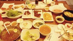 主打是烤肉,烤牛排味道非常好。分量也很足。烤蘑菇味道也很嫩,中间的烤出的水也很鲜。其他菜做的也很有特点。在这个店,吃到了在别的韩餐店吃不到的口味。不错。不足的就是烤肉的炭火是放在桌面上,烤的时候,排烟散热系统不是很好,味道有点大,然后很热。饭后的红豆冰沙也还可以。甜甜的,凉凉的,正好解渴。价格感觉有点贵.自己偶尔去尝试一下,也是不错的选择。查看更多