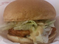 真的是比较休闲的西餐厅,因为吃的都是很随意的~~其实也就薯条汉堡类的,这里的还是做得不错,味道挺好的。我喜欢吃这里的汉堡,个头比较大,吃完,很有满足感的。要了个鳕鱼堡,这款汉堡,其实不是太多人吃,大部分过来的都是吃牛肉的,但是我自己特别喜欢吃鳕鱼,所以也就没有办法了,其实这味道也做得很好吃的,鱼肉真的很香很嫩的,口感也比较滑,加上沙拉酱,特别的香,配料也很足哦。