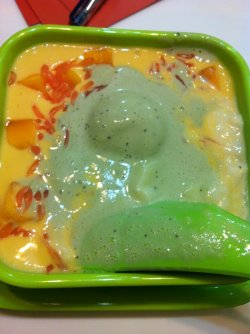 听说这里的——芒果白雪黑糯米 味道相当不错,口碑也很棒,所以这次一定要去吃吃看。芒果白雪黑糯米是芒果和糯米制作而成的。芒果很大一块,吃上去十分的酸酸甜甜可口又开胃,口感比较偏清爽清凉的。黑糯米吃上去当然就是“糯糯”的,而且有种甜甜的奶香糯米香味融合在里面,底下的甜品汤比较甜了一点,貌似是牛奶还是奶油制作的,不过刚刚巧可以搭配上芒果的酸甜味~查看更多
