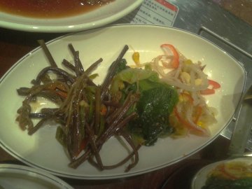 里面面积还可以,但空调暖气不足,坐住了有点凉。大冷天的实在是冻的缩手缩脚。里面装饰的比较有韩国的特色。我们去的比较早,因此,去的时候没几桌客人,但或许是过年期间服务员都回家过年了吧,人手有点不够,说好几遍也没杯子给我们拿来。小菜也给的挺多,但是不是该先上小菜吗,我们肉都开始烤上了,才把小菜陆陆续续给端来。桌子上的空间一下子就紧张了起来。南瓜粥吃完还可以在要,但第二次只给了两碗。此处不能刷卡。 烤肉什么的还好,朋友要了一个三文鱼刺身,一端上看那个颜色就不新鲜!怎么能是那么个颜色呢!…查看更多