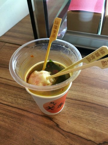 这家店生意很好,排队结账很久。点了剑鱼松寿司,很不错。不是很腥,鱼松很香,寿司的米粒粒粒饱满,有微微的酸味,很平衡,不会抢走其他食材的味道,外面包裹的海苔很好吃。
