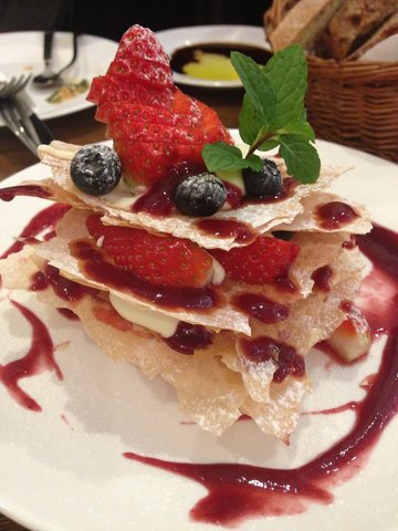 20131214最近运气不错微博中了好几家吃的~下午茶还是很爱的,中到还是很开心滴~那天约了朋友下午2点这家店碰头的,不晓得为撒虹梅路超级的堵,实在不行就跑了一段路到的店面不大,小小的,不过挺温馨干净的布置,下午茶现在有活动转发官方微博38一位,一份甜品+coffee or tea,看着价格还算实惠的。后面上实物,发现那真是物超所值啊。。。偶和朋友都觉得店家要亏本的节奏。。。草莓千层塔:很创新的甜品,几层薄脆饼中间丰满的奶油和草莓还有草莓酱,很是好味道。。。外观也很美丽,很美貌哦~虽然吃起来有点困难~因为脆饼和容易碎哈~比较适合和闺蜜一起品尝~~热巧克力:挺好的不是特别甜,量也挺大的~提拉米苏:大概有外面店家的2倍大小,一个小姑娘的手掌那么大,业界良心啊~和蔼的老板娘说是因为这边外国人比较多,所以size都是偏西方的尺寸,大满足~底部木有外面店家常有的酒味,奶油部分相当可口,是我喜欢的~拿铁:做了个笑脸,挺可爱的,味道也不错~看着店员现磨的咖啡,等了一会儿呢~圣丹尼尔火腿披萨:嘴巴馋啊,看到隔壁的老外点了个披萨偶也就点了个,晚饭就不用吃啦~他们家只有12寸大小的披萨,薄底的,很不错~料很足,拉丝诱人~~一口咬下去汁水很多,那叫一个满足!这边十号线龙溪路下来走个10分钟就能到,离我家四站路~还算挺方便的~味道还是相当值得推荐的,吃得出厨师的用心,值得回味的小店.性价比也很高~有机会来试试牛排啥的~…查看更多