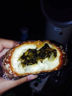 上次吃的是红豆味 是在我家那边罗莎买的 这个是昨天下班在步行街这边买的 我以为只有一个味道也就没有很注意看 结果回家一看酸菜味 真是醉了 吃起来的口感就像吃酸菜包子一样啊 虽然还算能接受的味道 但是还是觉得很怪 有黑暗料理的感觉