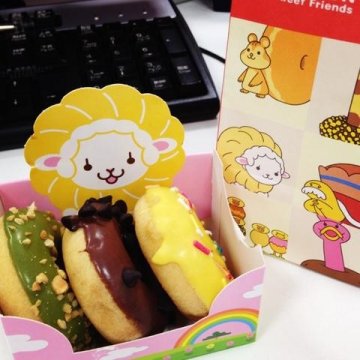 我的感觉是读书的时候超爱吃这家店的甜甜圈,但是后来工作了他们家的分店很多都关了,所以也不会经常路。这次去环球港一日游,又看到了熟悉的甜甜圈,很怀念哦。我觉得他们家分类很清楚,而且甜甜圈都是五彩缤纷的,让人看着就很甜蜜的感觉,我觉得儿童节是最适合吃甜甜圈的节日啦。他们家最爱的是芬迪系列,很多种不同的味道,朱古力、抹茶、咖啡什么的都有,不过我爱他们家新出的酸奶味,最好吃的是酸奶草莓芬迪,粉色的很梦幻,外面一层是淡淡的酸奶味,有草莓的清香,里面就是甜甜圈啦,咬下去很带劲,甜甜圈果然很好吃呢,也不是很甜。现在还出了很多新款,越来越漂亮了…查看更多