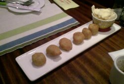 美伊娜日式意大利外表装修成黄绿色漂亮的天台很吸引人打着家庭意大利餐厅的旗号听说老板是个日本人 所以菜单中加入了很多日本元素因为没有预定 只能做吧台 不过这样也正好能看到他们烧菜的过程点的菜不是很多 【煎香蕉】20米 这个最先上的 其实本来想作为甜点的 6个香蕉小块块裹着面粉被炸的金黄 配一小碟香草味的冰淇淋 冰淇淋装在哈根达斯的盒子里 但不知道是不是真的哈根达斯 反正味道不难吃 【明太子意面】60米 中份 明太子是粉红色的量蛮多 没有我想象中的腥 我GF说明太子没有日本吃的大 但还算新鲜 面的量很大 以后2个人点小份就够了 这里的用餐比较随意 提供的餐具除了调羹外 还有筷子 我看到有几个日本人是直接用筷子吃面的哦【PIZZA】中份56米 4种cheese的口味 薄饼披萨 芝士拉丝很长 吃起来似乎也带有些日式风味 不算太真宗的意大利pizza 切PIZZA的刀蛮特别的 带金属的小齿轮刀 餐厅没有主动提供餐刀 加上这边用餐环境的随意 我们后来就直接用小齿轮刀来代替餐刀了^-^【酸甜炸鸡色拉】35米 晚餐特供的 炸的酥脆的鸡肉外临上 玉米 番茄和萝卜碎粒的酱 旁边再配以蔬菜色拉吃起来很清爽 萝卜口感很想腌制过的糖醋萝卜 但加入色拉后 出乎意料的美味 量不是很大 2-3个人吃正好【饮料】店里的饮料不算便宜 果汁感觉一般 不过问了下可以外带饮料 果断旁边罗森买进来环境很轻松的餐厅 客人里日本人和老外蛮多的 创意的日本意大利西餐 下次要去他家的 天台坐坐查看更多