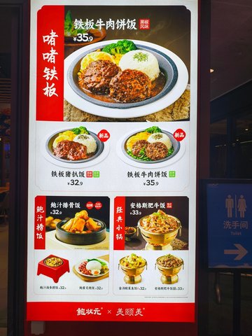 鲍汁排骨饭 / 百香果金桔汁 / 金汤酸菜鱼饭 / 葱油鸡 / 现烤芝士鲍鱼 / 安格斯肥牛饭