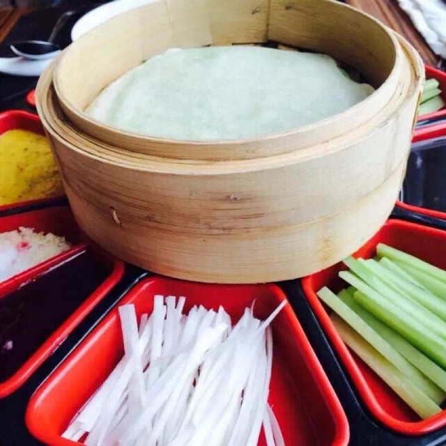 位置:新源南路1号都汇天地商场3楼302号。环境:店面非常的宽敞,古香古色的。菜品:他家的烤鸭很不错,尤其是鸭饼,还是绿色的,其实就是用菠菜汁和面,而且配菜做的是相当的精致,葱白切的特别细,而且一点绿色都没有。头一次搭配洋葱吃烤鸭,还别说,这个口感更加的脆一些,但是不要放太多,否则辛辣味就重了。价格:人均140元。