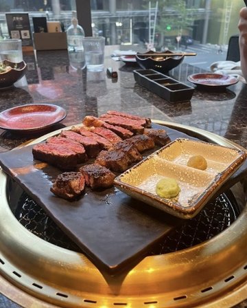 简直就系系深圳其中最难忘嘅一餐!!😍依间烤肉我下次都要一定要再来!!抹茶冻真系无法拒绝!所有肉质都好新鲜,食起上嚟真系好香嫩!同埋环境都好精致非常适合约会或宴请重要的人!🧡蝴蝶切牛肋条烧到7成熟嘅牛肋条,搭配生菜洋葱超香!💛海胆蛋味噌厚切三文鱼 佐柚子盐厚切三文鱼面头上铺满鱼籽酱、海胆,再加少少柚子盐,入口即化,一啖好满足!😍💚白玉红豆抹茶冻香浓抹茶味,配上丝滑奶冻,抹茶控必点!今个圣诞、跨年夜一于同班FD一齐饮翻两杯狂欢一下啦⭐️