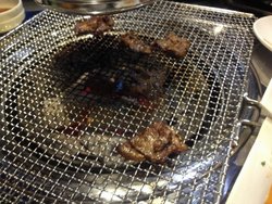 被朋友拉着来尝试活章鱼火锅,话说有点残忍,特别是新鲜的活章鱼被切段了在盘子里扭来扭曲,放进烧开的汤里是,我眼睛都闭了起来。韩国人真是有勇气。煮熟的章鱼口感不错,新鲜的食材果然是王道。五花肉烤起来还蛮有意思的,滋吧滋吧的响,让人听着就很有食欲。蘸着酱料吃起来很爽。爱吃肉的亲们别错过这道菜。海鲜饼里的章鱼成分很足,而且吃起来很香。