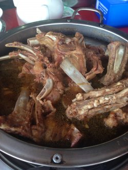 一家羊蝎子店,就在金隅丽港城南门,周末来望京逛街,路过这边来吃的午饭,环境还不错,店面挺干净的,而且店里充满着热腾腾的羊蝎子味道,使人特别有食欲。我们点了大锅蝎子,服务员说有4斤,羊蝎子这个东西,骨头多,尽管4斤,肉量也一般。蝎子都是炖好的,加热就能吃了。上面的几块都是肉多的,给儿子吃了一块多,肉很多,他啃完,基本就半饱了。下面基本就是骨头多的了。吃完后我们还涮了点面条跟蔬菜,放点醋,还挺香的。3人消费150元不到。查看更多