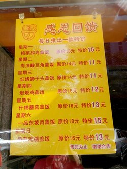 这是一家很受欢迎的中式、家常快餐店,也经营早点,同样的火爆。早上已经过了九点半了,店里还是满满的,不大的小店坐满了食客。他家的早点性价比高,而且干净卫生,因此很受欢迎。我最喜欢他家的油条,不太敢吃街边的油条,但他家的很放心。他家的油条没有矾涩涩的味道,应该是没有添加的。有的是鸡蛋的香味,油条蓬松,口感很好,而且放久后也不会像皮筋一样咬不动,推荐!
