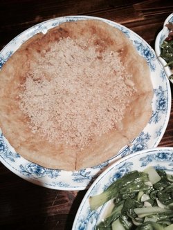 一般总在汉口活动,今天去了武昌的老村长吃饭,徐东这家不仅店面大环境都要好些,里面的服务员说话温和态度也不错,吃饭也吃得顺心。点了油渣小白菜,利用大火将猪油片油脂炸出来后炒小白菜,吸收猪油的青菜颜色会更加鲜绿味道也更香,小白菜比较软,吃起来也香,唯一不足的是咸了点,就着白米饭吃还行。土豆烧猪肉,这个菜颜色特别深,土豆和猪肉的个头都差不多,土豆很面就着外面裹着的老抽调料汁吃起来味道还不错,一口一个倒也很方便。猪肉带着点肥,所以吃起来特别软,但是不会觉得油腻,这个油汤蛮适合拌饭吃呢,很香但不会太咸,带着猪肉香超级下饭。凉拌牛肚,牛肚切片周围放满了香菜叶,遮盖得严严实实,上面还撒着油炸花生米,犹盖琵琶半遮面效果,里面的牛肚卤熟后用大蒜泥生抽香醋辣椒粉等调味吃起来有劲道,味道也很足。上面的花生米很新鲜,脆香油脂多。糯米糍粑味道很好,一大张薄薄的油煎糍粑平铺在盘子里,上面撒着黄豆面和糖粉,糍粑除去外皮的焦香里面特别白嫩香糯,就着上面的糖粉一起吃那个滋味真心太好了,又香又软又甜。而且糍粑煎得火候正好,焦香脆却不会糊,赞! …查看更多