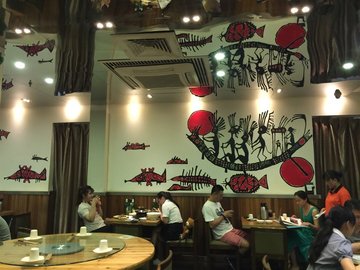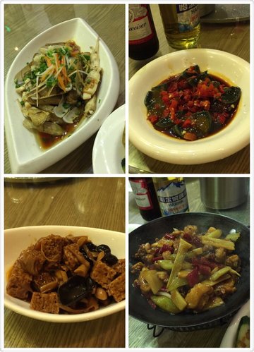 上海工干之旅,自由活动出去外滩行下之后,就去附近揾食,上海嘅餐厅收得早,好多都已收舖!行过呢间仲开紧未截单!入内桌椅系中菜馆格局,墙上画咗好多关于鱼嘅壁画!菜色系食上海菜!不过有啲菜色已经无咗!落单后食物好快到!老醋海蜇头($36)细细碟,海蜇好爽有咬口,酸酸地开胃!酱椒皮蛋($8)细细碟,皮蛋黄起身,蛋白弹牙,酱油好浓,不过唔辣!几好味拍酱青瓜($8)细细碟,青瓜爽脆!味道较淡,同埋入唔到青瓜入面!一般家常凉菜($22)大杂烩,爽口凉快好味!香菜牛肉($22)无食口水鸡($38)够咸香但唔够辣,鸡肉斩得太细碎!春鸡咁!葱油蛏子($28)好鲜嫩!姜葱味提鲜!咸香好味!姜葱炒蛤蜊($28)劲好食!蚬肉无沙!好鲜嫩多汁!好味!四喜烤麸($10)酱油甜蜜!比烤麸索晒!烤麸弹牙!香辣鸡仔锅($38)无食!朋友叫了啤酒:百威啤酒($12)哈尔滨啤酒($19)店员勤快爽手!𩠌菜上得快!价钱唔贵!抵食!…查看更多