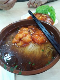 喜欢吃浓油赤酱的盖浇饭,浇头很多,满满的铺在米饭上面,连米饭都看不到了.酱汁很好吃,甜甜的,咸咸的,还有点微辣.拌着饭吃正好,花生米不够脆,有点软掉了,笋丁太多了,本人不爱吃笋丁,鸡丁量不够多,鸡丁很嫩的,应该是做过特殊处理的。中午吃饭的人,非常多,由于我只有一个人,所以很快找到桌子来拼桌。查看更多