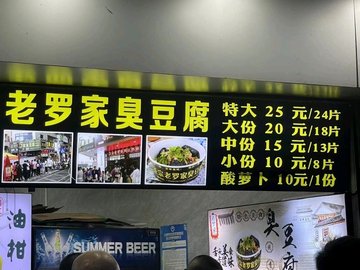 老罗家臭豆腐 / 酸萝卜 / 酱料 / 铁板鸭肠 / 火爆鱿鱼 / 油柑汁