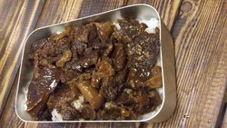 这家店也算是沈阳比较有特色的的了,在沈阳大概有3家左右的店,应该是连锁的,反正风格都很相识,食物也都一样。我去的是铁西这家,去那天天气不好,大概1点多到的店了,人不是很多,当时只有一桌吃饭。一进门有6张桌子,地方不是很大,装修风格很有特色,棚顶是报纸糊的,桌子是老式缝纫机改的,房间里挂了很多老式钟表,水壶等以前的物件,非常有特色。他家老板人特别热情,还有一个同样热情的小白猫跟你玩,他家都是套餐,有老饭盒肥瘦12元,有护心肉15元,还有拆骨肉。我要的护心肉的,是套餐,老饭盒和餐具装的,有一个盖饭,上面是肉,下面是米饭,肉都是瘦肉,量很多,没吃完都,入味不错,有些汤汁侵入米饭,整体来说很香。一碗酸菜汤,是以前那种绿色搪瓷碗,有少许酸菜和热乎乎的汤,这个我很喜欢,是可以免费添的。还有一个小菜,这个特别咸,个人不是太喜欢,只是尝了下。我又另外要了一个土豆丝,也是老饭盒装的,量还可以,拌的样色很好看,土豆丝加胡萝卜丝。这个味道是酸甜口的,很爽口。整体来说价位,菜量,服务,环境,以及上菜速度都很值得赞的一家店。…查看更多