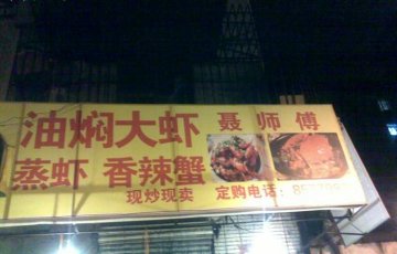 只有一个很小门面支上锅灶,专做香辣蟹和油闷大虾。油闷大虾值得推荐,店家处理的很干净,熟练的去头、开边、剪虾钳,做出来的虾肉饱满,入口味道香甜,吸出虾肉肉汁里略带点麻,肉质还有点弹力。老板烧虾子的时候 还加了啤酒,可以降火去腥。没有室内就餐的地方,只能坐在路边。天热、下雨用餐不方便。分50块和100块两种,最划得来的点法就是份2次点2份50块的。量足,小份的更入味。这两年不断上涨,今年还没去过不知道涨到多少了。现在的招牌换成了“聂师傅油焖大虾”这个门面原来就是聂姓人开的一家小副食店。现在虾子的生意火了就挂起了聂师傅的招牌。这招牌是高高挂起了但味道却直线下降,选用的虾子个头偏小,肉质不饱满。分量显著减少,之前一份是满满一盆,现在只有2/3,价格也由原先的50一份涨到了55,有朋友分析是地沟油被禁引起的成本升高。有一段过于嚣张,被宇宙和平的守卫者城管打击了。目前晚上九点前不敢再把桌子摆出来。…查看更多