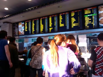 是一家有很多年历史的小吃了~~~还是延续着窗口点餐的传统,有立马可取的小吃,还有开票自取的现做类主食。种类品种还是很丰富的,而且更换的价目牌还有英文表述。但是价格都比较不可爱了,连一块半个巴掌大点的豌豆黄都要1.5元一块了。火烧夹肉要5元左右,迷你的小饼里夹了两三片牛肉和香菜什么的,实在算不上实惠。座位倒是座无虚席,很多老北京都好来这喝碗豆汁或者面茶,我实在对那些无感。点碗羊杂汤,再吃个火烧、豌豆黄之类的,能算是打发了一顿饭。