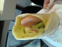 只能说被这个被蛋卷的广告骗了,根本没有图片那么美好么。而且小小的一个,如果是女生勉强够吃,男生够塞牙缝都难说啦。味道马马虎虎,不如自己摊的鸡蛋饼好吃呢。中间的料也少,菜叶少,肠几乎就是淀粉。人超多,没位子。…查看更多
