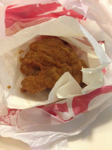 肯德基的吮指原味鸡是我一直都很喜欢吃的,几乎是每次必点的。鸡肉很嫩,很香,有时还有汁水,外皮有点脆,就是那么喜欢。蛋挞的外皮很油,酥酥的,中间软软的,吃多了有点腻。