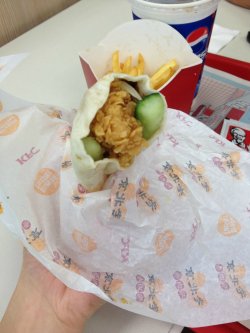 中午的时候到肯德基买了老北京鸡肉卷还有鸡汁土豆泥吃,还蛮喜欢的老北京鸡肉卷的,里面的鸡肉外脆里嫩,配上一些别具风味的京葱和爽脆的黄瓜条、甜面酱之后整个口感就显得很丰富,而且吃起来味道也是各种香。鸡汁土豆泥质感很细腻的,入口酥糯,鸡汁的咸香味道也很好地和土豆泥本身融合在一起,也是一如既往喜欢的。查看更多