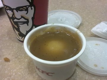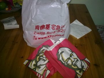 中午实在是想不出要吃什么,就直接KFC外卖了,偶尔吃一次还是很香哒!老样子,香辣鸡腿堡,再加份鸡汁土豆泥。快递速度还不错,30分钟内到了。鸡腿堡分量依旧很足,吃得比较撑,土豆泥觉得放多了些黑胡椒粉,感觉有点辣舌头。