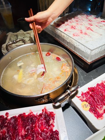 以大气的红黑的装修营造出舒适的用餐氛围。落座后,服务员热情推荐招牌菜品,一旁不停帮我们烫食物,服务态度令人满意!如果觉得食鱼未够满足,还可以去八合里落单,在脆鲜生享用,今次真是大鱼大肉啦!哈哈!🌿五指毛桃清补锅¥49五指毛桃的清香与药材的温润完美融合,入口清甜回甘,解去火锅的热气,唤醒味蕾。🌈中山脆鲩鱼腩(小份)¥39✨中山脆鲩鱼片¥248中山特有的蚕豆饲养,肉质紧实爽口,鲜味十足!鱼腩切片薄如蝉翼,入锅涮烫数10秒便蜷曲成花,口感绵密弹牙,油脂香与鲜嫩在口中交织,鱼片脆爽,咀嚼时“咯吱”作响,独特的韧性令人回味无穷。💫酥炸脆鲩¥29最令人惊喜的小食,外皮金黄酥脆,内里鱼肉却依旧保有脆嫩,蘸上特制酱料,一口咬下,层次感在舌尖炸裂,香酥与鲜美碰撞出独特风味!必试之选!🌱鲜晾腐竹¥23挂起一条条的腐竹,感觉新鲜又有趣,豆香的鲜甜在齿间缠绵,软韧的质感恰到好处!🕶️手工黑豆腐¥23豆腐口感较粗糙,豆香浓郁!🍃蔬菜拼盘¥39为火锅增添一抹清新,平衡了肉食的丰腴。#脆鲜生·脆鲩鱼#中山脆鲩鱼腩#酥炸脆鲩#火锅#北上火锅#深圳火锅#内地探店#深圳美食#港人北上…查看更多