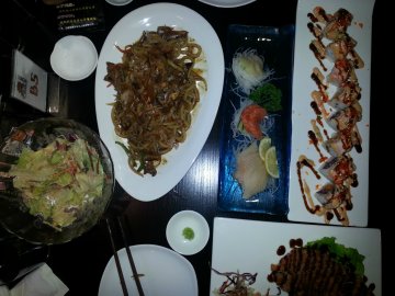 因为和朋友去水上附近办事 所以在这块找吃的 看见了这个店 名字很有趣就进去了 没敢多点 点了推荐的沙拉,里面有鱼子,鳄梨,还有酱汁 估计是混合了芝麻烧汁之类的 口感清爽 酸酸甜甜特别的开胃 炒牛肉乌冬面,量很大,都没吃完,洋葱和牛肉的搭配很棒,牛肉也很瘦。洋葱炒的不老 不会那么辣 也不软 很好吃 乌冬面非常有嚼劲 飞跃帝国,这个是有多推荐 朋友吵超级喜欢吃 非要再点一盘酱特别的 很浓,里面包着紫薯和山芋 很软糯很香甜 ,味道非常独特。 因为我们不是特别喜欢吃生鱼片之类的东西 所以就没有点 不过芝士焗扇贝也特别推荐哦 新鲜!…Read More