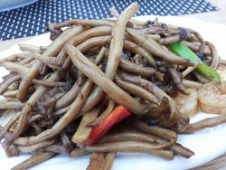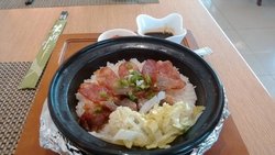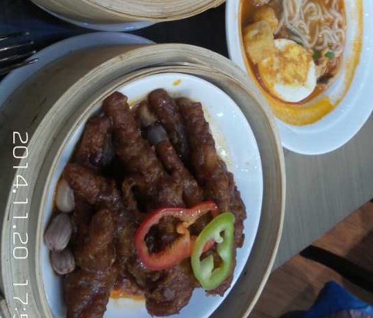 闺蜜最近瘦的可怜,好久没和我在一起吃饭了,好不容易她请了一天假,相约带她去吃好吃的~给她发了N多个馆子的链接,最后闺蜜选择了这家。地方是很好找的,和食间牛排一样都是半开放式的环境,我不太喜欢这种开放式的环境- -去的时候正好是七夕,服务员抱着熊宝宝,还以为是给情侣的。不过当天确实是有不少情侣,嘛~也有带孩子去的~是团购去的,都是二选一的那种。闺蜜把决定权交给我了,我就选了评价不错的几个。黑果醋酿梅子小排¥42,排骨到是挺好吃,因为有梅子所以酸甜口~就是太少了,少的可怜,然后就是扮相乌突突的不好看~一小盘里面大部分都是梅子,我赶脚我是买了一盘梅子的即视感~正价去吃的话我得疯... ...茶树菇爆双鲜¥28,我非常的喜欢吃茶树菇,但是这个茶树菇的味道实在无法恭维,很淡很淡的味道就像是水煮了一样,而且虾仁就两个,没错。。就两个,鱿鱼就一块,而且就是一小截鱿鱼爪-_-还有就是这道菜的颜色也是乌突突的~泰姬咖喱鱼丸¥9,鱼丸这玩意儿就是淀粉货,没什么可说的,但是闺蜜最喜欢这个- -我跟内货永远吃不到一起去超级奶芭鱼¥12,这个的扮相非常的可爱啊,看团购图片的时候就被这个吸引到了,味道类似布丁,但是没有布丁滑也没有布丁那么Q~不过整个团购下来只有这个比较和我胃口。竹蔗茅根水¥19,闺蜜喝了一口喷了出来,果然是树根子的口感,好难喝~好在我有在外面买的贡茶,这个真是超级难喝的~不推荐以前一直以为芊雨叶的菜应该挺好吃,但是我错了 - -期望值过高了,本来只想给两颗星,但是闺蜜吃的还算不错,所以三颗星吧。…ดูเพิ่มเติม